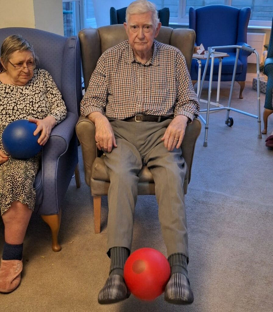 The college Kids brought so much energy into the home and joined our residents for a lively game of pass the parcel, which had everyone smiling. We finished with some gentle chair exercises that the whole group enjoyed together.