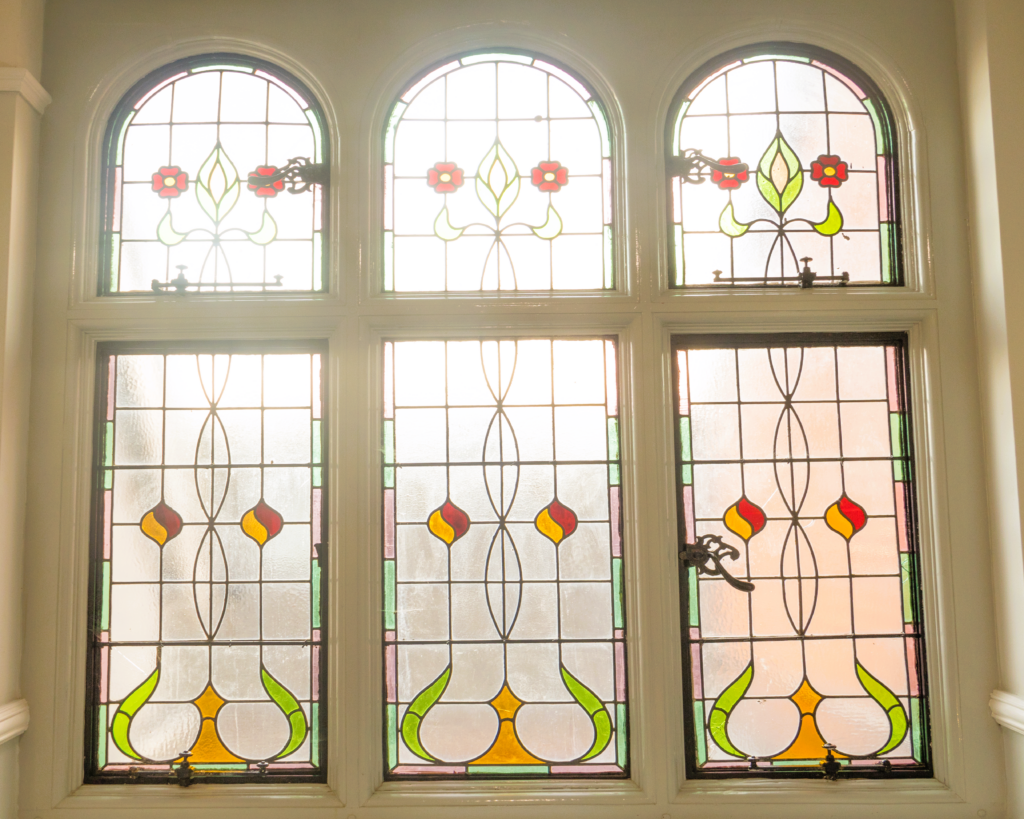 Our original stained glass windows are a cherished feature of the home and are believed to date back to the late 19th or early 20th century, offering a tangible connection to the building’s past. Created during a time when craftsmanship and decorative detail were central to architectural design, the windows reflect traditional techniques and a level of care that is rarely seen today.