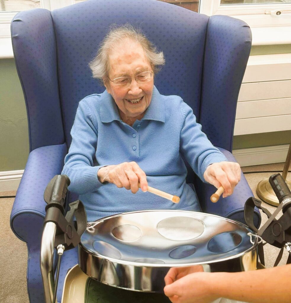 Steel pan music filled the home, with residents joining in, keeping the rhythm and enjoying every moment.