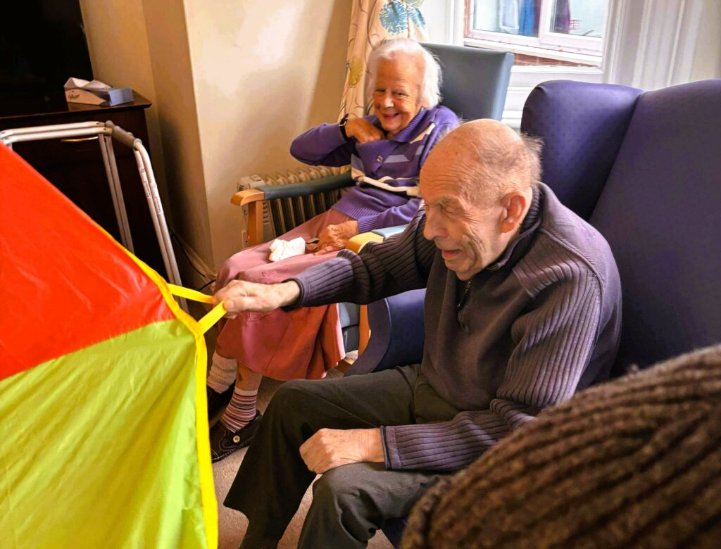 A wonderful session using the multicoloured parachute alongside college students. A lovely example of intergenerational connection, teamwork and shared fun.