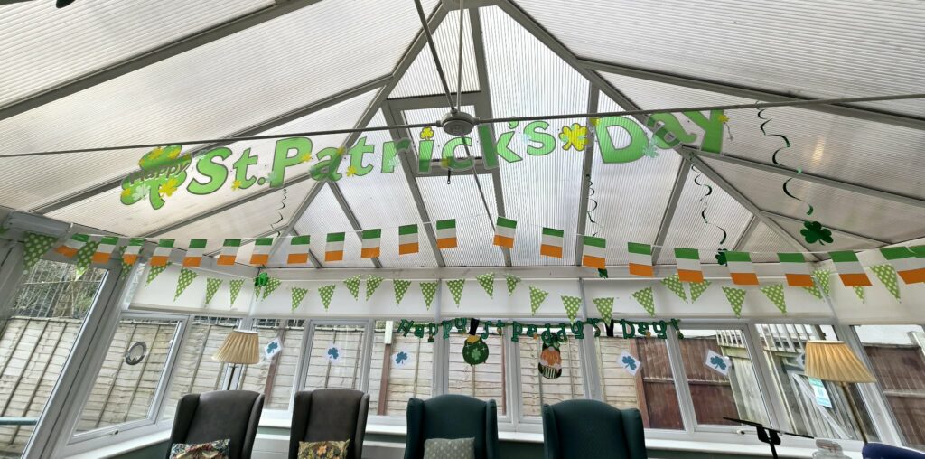 “We’ve been getting into the spirit of St Patrick’s Day by decorating the home with vibrant greens, shamrocks, and festive displays in every area. The decorations have really brightened up the home, creating a warm and joyful environment for residents and staff alike.”