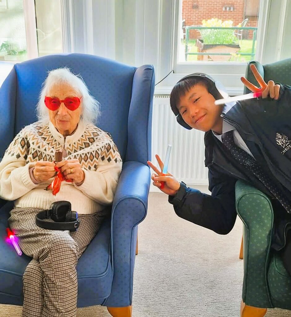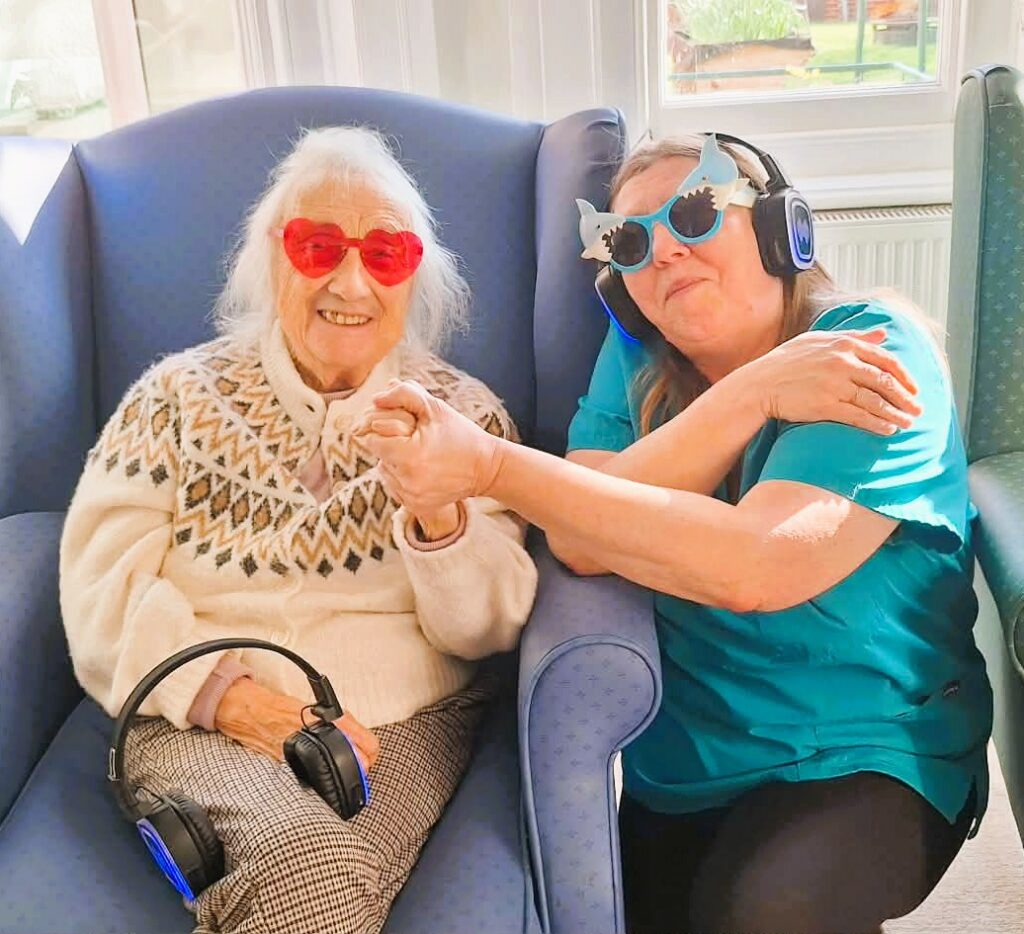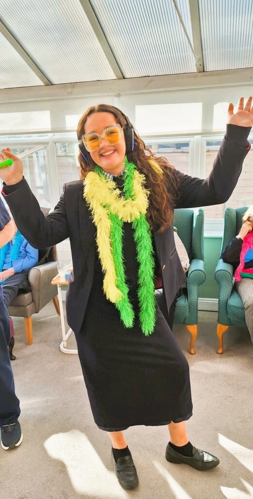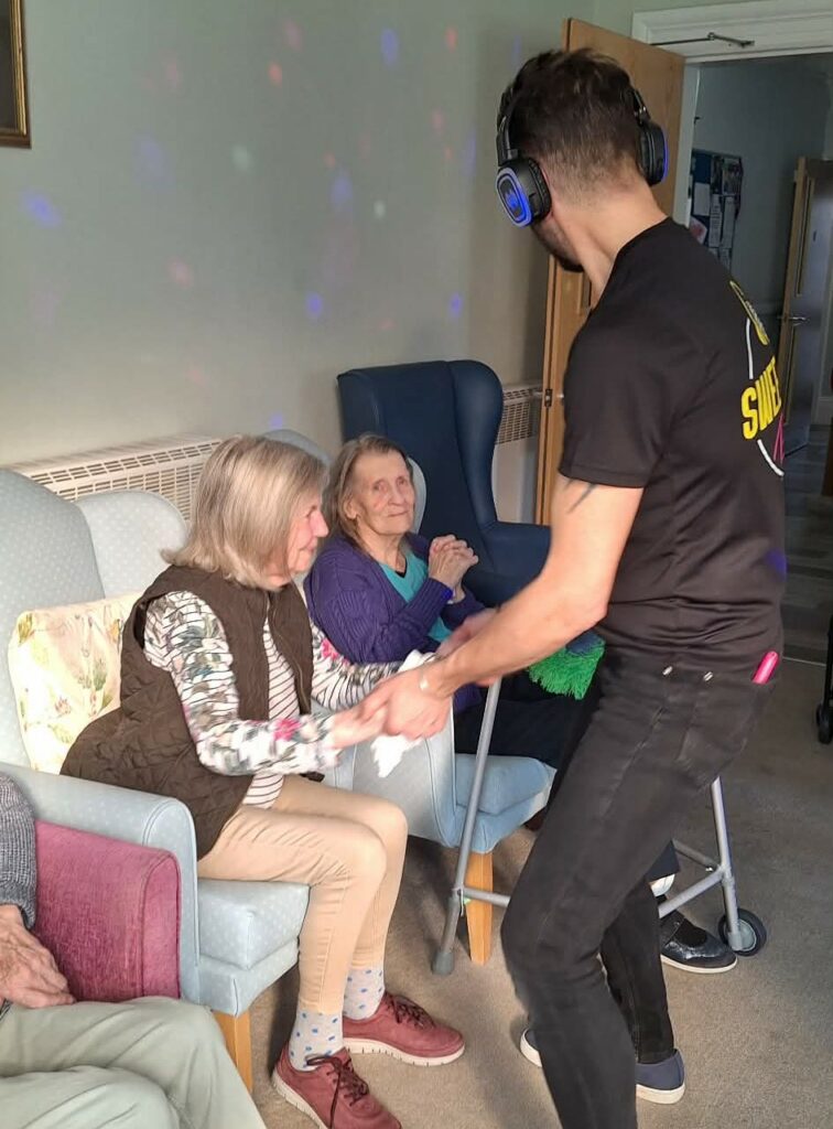 During the visit from local college students, we organised a silent disco activity that brought everyone together through music and movement. Residents and students wore wireless headphones and enjoyed a range of songs while dancing, singing along and spending time together. The activity created a lively and welcoming atmosphere, encouraging interaction between residents and students. It was wonderful to see different generations sharing music, laughter and conversation while enjoying the experience together.