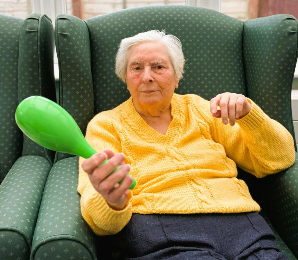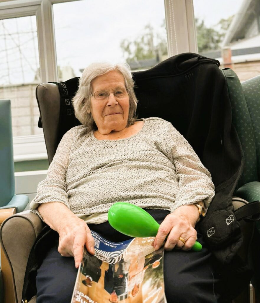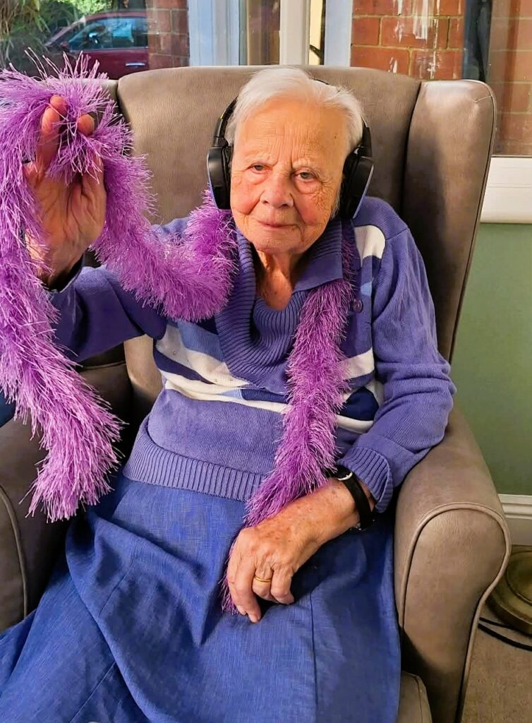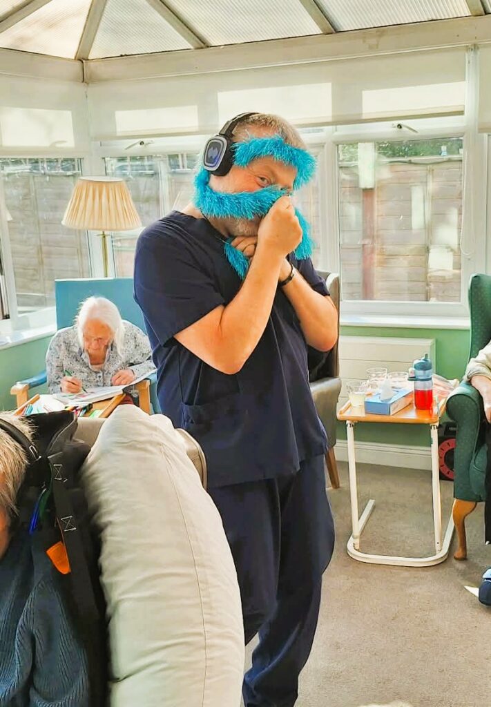 During the visit from local college students, we organised a silent disco activity that brought everyone together through music and movement. Residents and students wore wireless headphones and enjoyed a range of songs while dancing, singing along and spending time together. The activity created a lively and welcoming atmosphere, encouraging interaction between residents and students. It was wonderful to see different generations sharing music, laughter and conversation while enjoying the experience together.